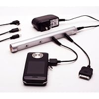 Prevent overcrowded power strips and cord tangles with this convenient four-port charging tube for media devices, like cell phones, MP3 players, digital cameras, and more. From Equity by La Crosse's Charge4All line, the silver charging tube eliminates the need for multiple charging cords and outlets as it plugs into one grounded AC outlet to simultaneously recharge up to four devices. Five smart charging adapters accompany the tube: mini USB for Blackberry and Motorola, micro USB, iPod/iPhone, Samsung SCH, and LC Chocolate. For other media devices, including Nintendo, Palm, Sanyo, Sony, and many other manufacturers' products, or to charge two identicaldevices at once, additional charge adapters are available at www.charge4all.net for separate purchase. The charging tube turns on and off with the push of a button. While charging, a red LED indicator light illuminates. The charging tube comes with an AC power adapter with a current limit of 2 amperes; the charging tube is not suited for powering notebook computers or other high current devices. Likewise, the tube requires a plug converter for use outside the USA. This item is covered by a limited one-year warranty. The charging tube measures 7.4 inches long by .9 inches wide by .79 inches high.