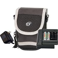 (More customer reviews)I really like the camera bag that came with this kit though I would prefer a little more room so I could store extra batteries, digital media cards, and the USB cord all in the pocket. The kit came with a charging base and a couple of rechargable batteries also. I would have prefered that it come with the power cord for the camera also, this would save more in the long run when it comes to battery time. You use more battery power when uploading pictures than any other time. All in all it was a great buy.